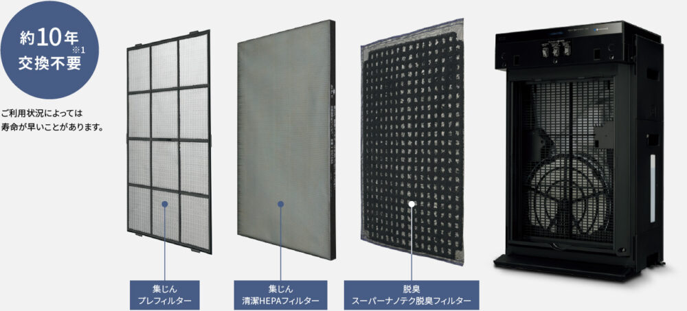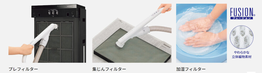 - 集じんプレフィルター…ペットの毛や繊維など、比較的大きな汚れも効果的に取り除きます。