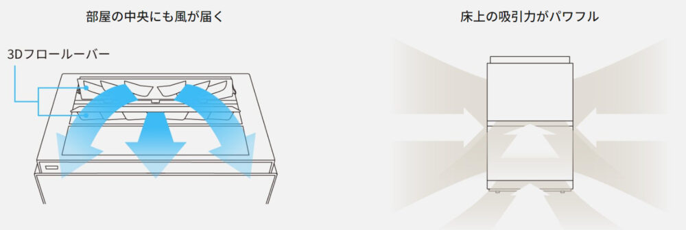 3Dフロールーバーを採用し、空気を立体的に循環させることができます。