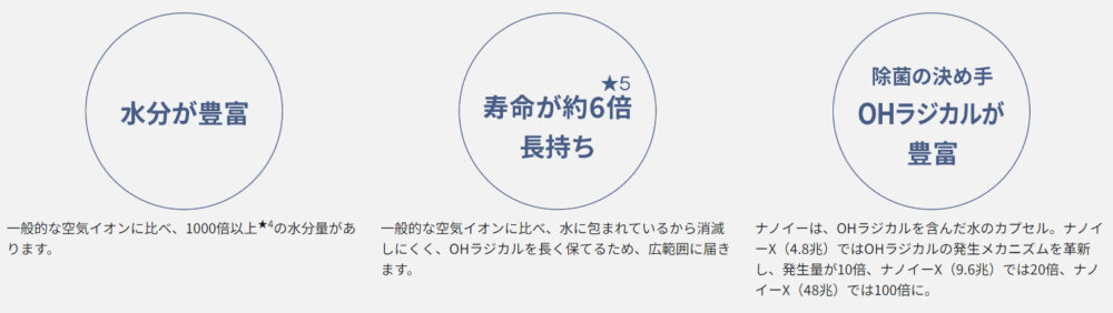 | 除菌 (空中): ナノイーX(9.6兆) | |