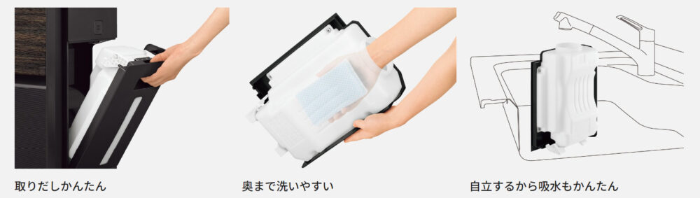 シンクにも立てられる自立設計だから給水も簡単に行えますよ。