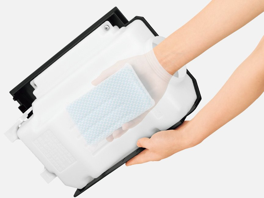 給水タンク、フィルター、トレー、センサーのお掃除が手軽に行えるよう設計されています。