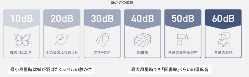 12dBは蝶が羽ばたくレベルの静かさでほとんど音がしません。