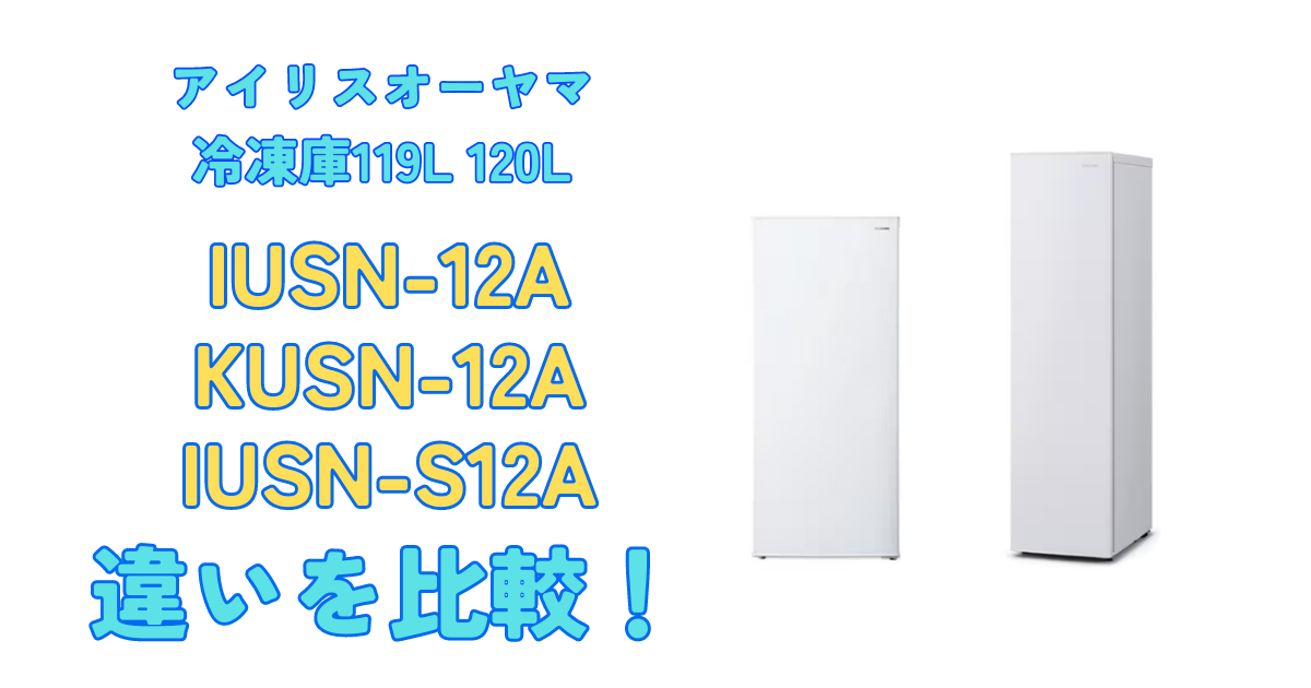 アイリスオーヤマのスリム冷凍庫IUSN-12AとKUSN-12AとIUSN-S12Aの違いを比較したところ、以下の7つでした。