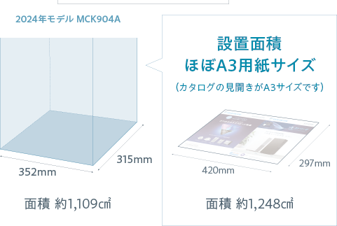 MCK904Aの設置面積は幅352mm × 奥行315mmです。