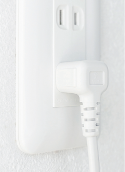 電源コードにL字プラグを採用しているからコンセントからの立ち上がりがなく安心で、壁際設置もしやすいですよ。