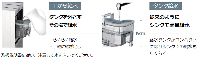 また、使いやすい2通りの給水方式も魅力です。