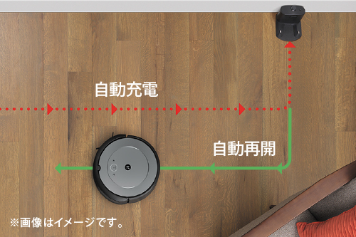 充電時に残りの清掃範囲を想定して必要な分だけを効率的に充電しますので、充電残量を気にせず掃除を任せられますね。