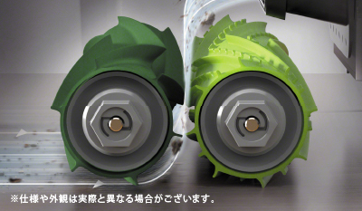 1本目のブラシがゴミをかき出し、2本目のブラシが逆回転してゴミを取り除くことができます。